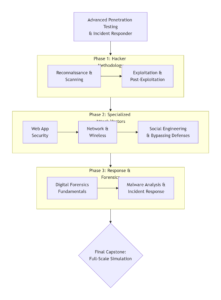 This elite, hands-on course is designed for security professionals ready to master offensive security techniques and advanced incident response. You will learn the methodologies of ethical hackers to lawfully break into systems, uncover deep vulnerabilities, and orchestrate the response to major security breaches. Graduates of this program will be prepared for high-demand roles as Penetration Testers, Red Team Members, or Incident Responders.